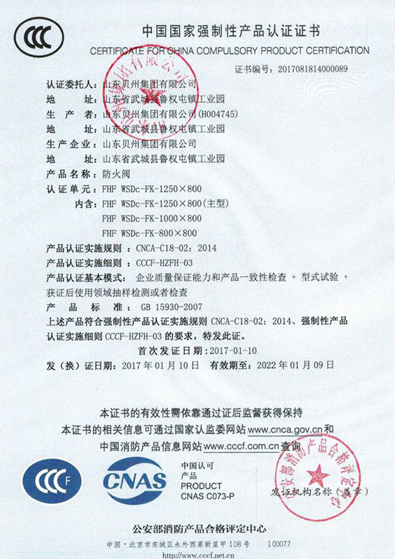 • 防火閥認(rèn)證證書(shū)